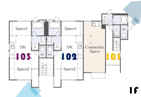 本物件はシェアハウスとアパートの「いいとこどり」をした物件です。水回りは各部屋に揃っていることで、自由に使うことができ、また共用のコミュニティスペースは共有や支え合いの場として活用いただけます。